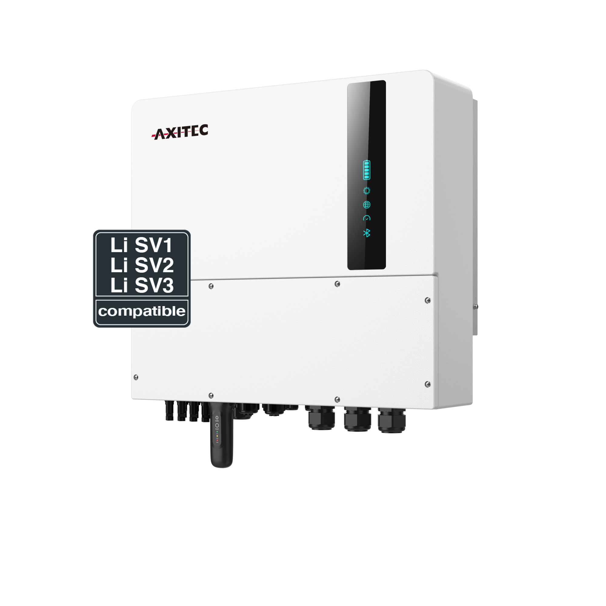 Axitec von Kopf bis Fuß – in unserem Fall eher von Dach bis Keller. Axitec komplettiert ihre Qualitätskette jetzt mit den neuen Leistungsklassen der AXIhycon Hybrid-Wechselrichter Serie. Natürlich kompatibel mit den hauseigenen Stromspeichern AXIstorage Li SV1 / SV2 / SV3. Bis zu 20 Ampere Eingangsstrom pro MPP Tracker sowie integrierte Lichtbogenüberwachung und Überspannungsschutz Typ 2 lassen wenig Wünsche offen. Auch eine Backupfunktion auf USV Level bringt weitere Pluspunkte.