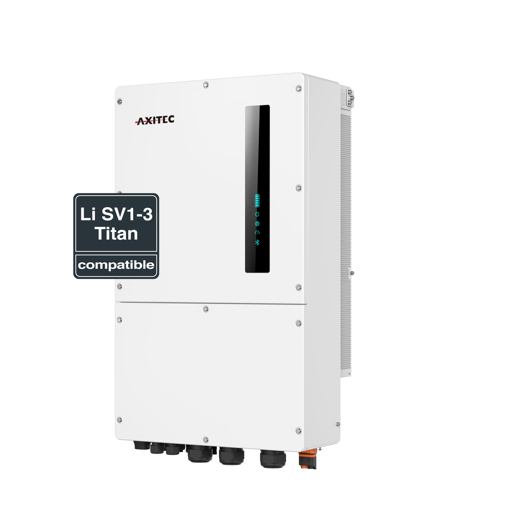Axitec von Kopf bis Fuß – in unserem Fall eher von Dach bis Keller. Axitec komplettiert ihre Qualitätskette jetzt mit den neuen Leistungsklassen der AXIhycon Hybrid-Wechselrichter Serie. Natürlich kompatibel mit den hauseigenen Stromspeichern AXIstorage Li SV1 / SV2 / SV3 / Titan. Bis zu 20 Ampere Eingangsstrom pro MPP Tracker sowie integrierte Lichtbogenüberwachung und Überspannungsschutz Typ 2 lassen wenig Wünsche offen. Auch eine Backupfunktion auf USV Level bringt weitere Pluspunkte.