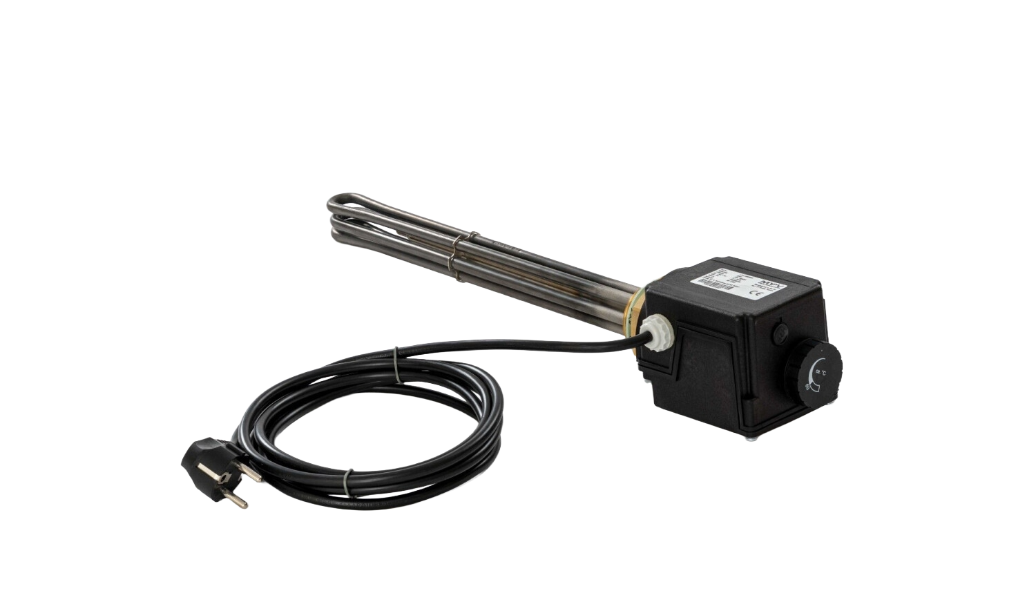 - Integrierter Bimetall-Thermostat mit einstellbarer Zieltemperatur von ca. 34–78 °C